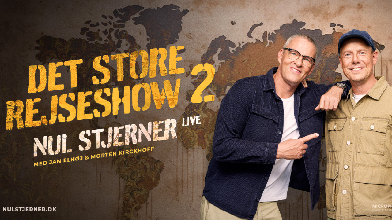 Det succesfulde program fra DR med Jan Elhøj og Morten Kirckhoff rykker igen fra TV-skærmen og ud på de skrå brædder med en helt ny live-tour: NUL STJERNER – DET STORE REJSESHOW 2. – For de to har om nogen mange, mange flere historier, erfaringer og oplevelser fra deres mange rejser med sig i bagagen!